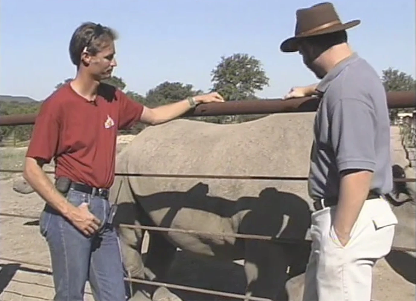 After another break, Devin speaks with Animal Care Specialist Adam Eyres about the rhinoceros breeding program. Eyres shows off the newest rhino calf who is happy to run and play for the camera. This leads to a trip behind the scenes to the rhino care facility where Devin sees firsthand what kinds of work goes into keeping the rhinos clean, fed, and healthy.